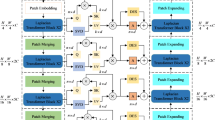 In Fig. 3, the feature maps before and after the Swin Transformer block are represented as X and Y, respectively. After the two feature maps are fused, channel information integration and spatial information integration are performed. In the channel information integration, pointwise convolution is used, allowing the interaction of the pointwise channel information at each spatial location. The output is denoted as \(C(X)\in R^{C\times H\times W}\), as defined in Eq. (1). Besides channel information, for spatial information, each point in a single channel is integrated with its neighboring points simultaneously. The output is denoted as \(S(X)\in R^{C\times H\times W}\), as defined in Eq. (2).