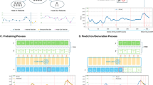 Similar to the above analysis and guided by prior work25,36,37, we sought to assess weekly and daily variations in long-term CGM use. To achieve this, we calculated for each participant, the ratio of high CGM use on each day of the week throughout their individual’s duration of CGM data (\(A_{dr}(i,w)\)); where i represents participants \(1,2,\dots ,n\), and w represents days of the week Monday through Sunday. Since our study dataset spanned multiple months and weeks of CGM data for each participant, \(A_{dr}(i,w)\) was used to quantify how many times a given participant had high CGM use on each unique day of the week (e.g., Monday). For example, let us assume participant 18 has 3 years of CGM data, and thus 156 full weeks in their dataset. If this participant had high CGM use (i.e., >70% wear time) on 100 Mondays and partial/low CGM use (i.e., <70% wear time) on the remaining 56 Mondays in their dataset, then \(A_{dr} (i=18,w=Monday)\) will equal 0.64 (i.e., 100 divided by 156). Next, for each participant, we calculated the change in CGM use for each day of the week (\(\Delta A_{dr}(i,w)\)) by normalizing across the average (across the week) CGM use for that participant (\(\overline{A}_{wr}(i)\)). Following this, we calculated the average (across all participants) change in CGM use for each day of the week (\(\overline{\Delta {A}}_{wr}(w)\)) and normalized across the average (across the week) change in CGM use for all participants (\(\overline{\Delta {A}}_{wr}\)) - see equation 2.