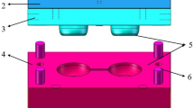 Injection molding is one of the most widely used plastic processing technologies, which accounts for more than 30% of the polymer products market1. Injection molding offers fast and economically efficient production of plastic parts of various shapes and complex geometries. The cost-effectiveness and quality of injection-molded parts highly depend on the cooling step in the process, which can take up to 80% of the overall cycle time2. One way to significantly improve the cooling efficiency of injection molds is to use conformal cooling channels (CCCs), which are placed equidistant from the cavity surfaces. With CCCs, cooling time can be reduced by 30–50% compared to conventional straight-drilled cooling channels3,4. Moreover, CCCs assure more uniform heat removal5, which minimizes the warpage and shrinkage of injection-molded parts. Another approach to enhance the cooling efficiency of an injection mold is to make it partially or entirely from materials with high thermal conductivity, such as copper, beryllium-copper6, and aluminum alloys7. In many cases, both CCCs and high thermal conductivity materials are used to increase the cooling efficiency of the mold. For example, Torres-Alba et al.8 used CCCs in combination with a mold insert manufactured from Fastcool® material, which is steel with high thermal conductivity (~ 50 W/m∙K). With such a hybrid design, the authors reduced the cycle time for a complex-shaped part by 27%. Ahn and Kim9 used CCCs and three layers of materials in one mold: P21 tool steel in the cavity area for high strength, Ampcoloy 940 in the bottom part to dissipate heat, and a special nickel-copper alloy as a mid-layer to decrease thermal stresses. This allowed the authors to reduce the cooling time from 15 to 3 s. Imran et al.10 produced a die for high-pressure die casting made from copper with a 2 mm layer of H13 tool steel deposited on it. The proposed solution reduced solidification time by up to 35% compared to conventional steel dies.