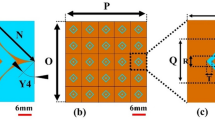 The unit cell is designed by firstly opting a square patch of dimensions lu × wu mm2 (i.e. 0.22λg × 0.22λg) and later by etching a ring of width gu around the boundary of the patch. The unit cell is designed and fabricated on Rogers TMM13i material of thickness 3.8 mm, a dielectric constant of 12.2, and a loss tangent (tan δ) of 0. 0019. The unit cell’s dimensions26,27 are tuned meticulously to resonate at 2 GHz, as shown in Fig. 2b. The S-parameters of unit cells demonstrating reflection coefficient (S11) and transmission coefficient (S21), for the proposed unit cell. A 4 × 4 order of unit cells43,44,45 with a uniform gap of g between any two-unit cells is created, with overall dimensions of 50 mm × 50 mm, as shown in Fig. 2c.