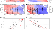 In addition to temperature and salinity, we analysed changes in near-surface (0.5 m depth) ocean currents within the region using monthly averages from GLORYS near-surface ocean current products40. The contributions of geostrophic currents and Ekman currents to the total currents were analysed using monthly merged satellite products at 0.25º horizontal resolution46. We adapted the Kuroshio South China Sea Intrusion index of Ref47to investigate the influence of the Kuroshio intrusion in driving the ocean warming within the South China Sea in 2023. We define the Kuroshio intrusion index (hereafter, KI index) in this study based on the zonal westward geostrophic current anomaly (relative to 1993–2021 mean) across 18°N–22°N and 120°E–122°E as an indicator of the Kuroshio intrusion strength. Mean sea-level pressure data were separately obtained from National Centre for Environmental Prediction/Department of Energy (NCEP/DOE) reanalysis-II monthly products48.