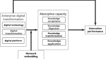 Digital transformation impacts corporate operations and organizational change, offering both opportunities and challenges for innovation27. On the one hand, digital transformation offers opportunities to enhance enterprise innovation capabilities. Research suggests that digital transformation can empower innovation and boost its vitality28. For example, it can manage knowledge flows and innovation, thereby fostering enterprise creativity29. By building digital platforms, firms can achieve innovation outcomes at lower costs and facilitate the implementation of innovation projects30. Additionally, digital transformation through internet platforms enables open innovation that is not restricted by time or location31.