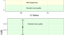 Van Lierde KM, Vinck BM, Baudonck N, De Vel E, Dhooge I (2005) Comparison of the overall intelligibility, articulation, resonance, and voice characteristics between children using cochlear implants and those using bilateral hearing aids: a pilot study: comparación de la inteligibilidad global, la articulación, la resonancia y las características de la voz entre niños con implante coclear y niños con auxiliar auditivo bilateral: un estudio piloto. Int J Audiol 44(8):452–465