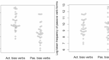 As mentioned before, our study is not concerned with the justification of potential choice of pairs of response options; it rather aimed at contributing to a discussion as to whether verbs in general should be used as response options due to inherent framing effects and therefore their lack of neutrality. In this context it is notable that in Study 1, we could not find significant differences in the IAT between L1 and L2 speakers, nor could we detect differences in Study 1, as well as in Study 2, between different age groups or genders.