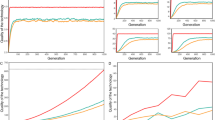 We then investigated the relationship between population size and TR skill compared to the TE along with the overall optimization status of the technology, defined as the ratio between the technology’s quality and its limit, such that \({optimization}=\,\frac{{quality}\left(T\right)}{{limit}\left(T\right)}\). The model suggests that individuals exhibit the highest TR skills level in early to middle generations, especially in larger populations (Fig. 5A), while simultaneously, the technology exhibits suboptimal optimization within the same range of generations and population size (Fig. 5B). This indicates that in these early generations, individuals have an overall better understanding of their environment, leading the way to many improvements and asocial innovations of the technology, which makes it theoretically excellent [i.e., increases limit(T)] but also reduce its optimization at the same time [because limit(T) will be far greater than quality(T)]. Note that this pattern is absent for very small populations (i.e., less than 5 individuals). This relationship between TR skills and optimization can be explained by the fact that the overall quality(T) of the technology dictates the quality of TE upon which the TRI of individuals are drawn. However, our model suggests that even the worst populations in terms of TR are still high (\(\frac{{{TR}}_{I}}{{TE}} > 0.75\)) while the technology optimization is very low (\(\frac{{quality}\left(T\right)}{{limit}(T)} < \,0.85\)).
