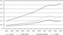 There are seven control variables: (1) Economic development level (\({E}_{{{\rm {co}}}}\)), measured via urban per capita GDP; (2) factor endowment structure (FE), expressed as the ratio of fixed assets of industrial enterprises above a designated size to the number of employed persons at the end of the year; (3) industrial structure (IS), expressed as the proportion of the added value of the secondary industry in GDP; (4) (Inno) is expressed by the proportion of the sum of science and technology expenditure and education expenditure in the general public budget for expenditures; (5) the level of foreign investment (FI), measured by the proportion of actually used foreign capital in urban GDP; (6) environmental regulation (ER), expressed by the comprehensive utilization rate of general industrial solid waste; and (7) the degree of marketization (MK), expressed as the proportion of employment in non-public enterprises.