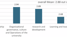 In Eq. 4, \({Y}_{{iuds}}\) is the dependent variable, representing the governance capacity of university institutions. \({{X}}_{{iuds}}\) is the core explanatory variable, representing the institutional layout conditions in time, space, and quantity. \({{Controls}}_{{iuds}}\) is a set of control variables.\({\,\beta }_{1}^{{\prime} }\), \({\beta }_{2\,}^{{\prime} }{and}{\beta }_{3}\) represent coefficient vectors of the explanatory variables and control variables, respectively. \({I}(\cdot)\) is an indicator function, and \({q}_{{iuds}}\) is a threshold variable. In this study, individual work experience is chosen as the threshold variable. γ is the threshold value to be estimated; the disturbance term \({\varepsilon }_{{iuds}}\) is independently and identically distributed; the other vectors are consistent with Eq. 1. The descriptive statistics for each variable are shown in Table 3.