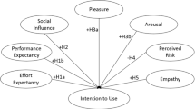 The findings of the proposed model are shown in Fig. 2, and Table 4 contains the estimated path coefficients of the hypothetical relationships. The results revealed that effort expectancy was affected by hedonic motivation (β = −0.083, p < 0.01), voice anthropomorphism (β = −0.395, p < 0.001), appearance anthropomorphism (β = −0.176, p < 0.001), behavior anthropomorphism (β = −0.161, p < 0.001), and personality anthropomorphism (β = −0.189, p < 0.001), but not related to social influence (β = −0.042, p = 0.222). Hence, H2 and H4b are supported, but H5b is rejected. Social influence (β = 0.27, p < 0.001) and hedonic motivation (β = 0.668, p < 0.001) significantly influenced performance expectancy, supporting H4a and H5a. Appearance (β = −0.011, p = 0.84) and personality anthropomorphism (β = 0.04, p = 0.523) did not affect performance expectations, voice anthropomorphism (β = 0.147, p < 0.05) was positively related to performance expectations, and behavioral anthropomorphism (β = −0.125, p < 0.05) was negatively related to performance, so H1 was partially supported.