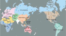 The corpus contained one 1-note scale, being found in East Asia. There were fourteen 2-note scales (3% of the total), with the highest prevalence in South America. Their mean interval-size was 3 semitones (range 1–7), thus defining the scale C-Eb. There were thirty-four 3-note scales (8%), with the highest prevalence in South America and North America. The mean interval-size between the first and second notes was 3 semitones (range 1–5), just as in the 2-note scales. The mean interval-size between the second and third notes was 2 semitones (range 1–4). The mean 3-note scale was thus C-Eb-F. It is interesting to observe that the mean 2-note scale (C-Eb) is embedded within the mean 3-note scale (C-Eb-F), which is itself embedded within the most prevalent and geographically universal scale-core in the dataset (C-Eb-F-G). This might reflect the antiquity of the minor pentatonic scale in world cultures (Reinhard 1958).