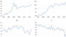 To trace the presence of long-run relationships among the variables outlined earlier in Eqs. 1 and 2, this study employs the ARDL model. This model takes the lagged values of the dependent variable among the explanatory variables (the Auto Regressive part) and also the lagged values of the independent variables (the Distributed Lagged part). To perform this methodology, the first step is to determine the order of integration of the variables. ARDL is used when all the variables are integrated of either order two or one. This model has this advantage over the Johansen Cointegration technique in that the Johansen Cointegration technique is valid only when all the variables are integrated into order one. The Augmented Dickey-Fuller (ADF) unit root test was employed to determine the order of integration. ADF breakpoint unit root test was also brought into use because it can adjust for any structural breaks in the data. The next step is to perform the bound test to confirm cointegration and get the long-run coefficients. Finally, the Error Correction Mechanism (ECM) was used to get the short-run coefficients and determine the speed of adjustment to the long-run equilibrium.