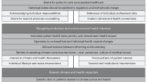 Samuel G, Briggs S, Hardcastle F, Lyle K, Parker E, Lucassen AM (2024) Focusing attention on physicians’ climate-related duties may risk missing the bigger picture: towards a systems approach to health and climate. J Med Ethics 50(6):380–381