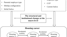 Regarding macro evidence of homeownership’s impact on labor mobility, Hamalainen and Bockerman (2004) find that net migration (moving in minus moving out) to a region in Finland appears to be depressed, ceteris paribus, by a greater level of homeownership in that region.Footnote 8 Modestino and Dennett (2013) find that one standard deviation increase in the share of homeownership in the origin state reduces the outflow of migrants from the origin to destination state by 2.9%. Hence homeownership in both origin (moving out) and destination (moving in) areas will inhibit labor mobility. In this study we intend to explore the impact of destination homeownership at individual level on migrant’s residency aspiration and employment in China, as origin homeownership rate in the countryside in China is very high and it did not prevent millions of rural workers from migrating to cities to seek jobs.