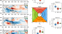 Figure 1a–d shows composite characteristics associated with the positive phases of AO and PNA. These anomalies (deviations from 20 years daily climatology) are constructed based on 15-day running average precipitation and temperature for positive AO and PNA, for indices larger than 0.5 standard deviation. The ASRv2 is used for the 2001–2016, and ERA5/CPC for the 2001–2020 intervals. During positive AO, the central part of North America (NA) exhibits drier conditions, whereas most of the east and west coast and northern Canada show modest precipitation changes by up to 0.5 mm/day (Fig. 1a). Influence of the AO is stronger in Eurasia, where the western part and the far east of the continent experience a drop in precipitation; higher rainfall is noticed in northern Russia and Scandinavia, in particular.