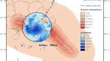 In this study, the OSAT method is adopted to identify the TC-induced precipitation. For each landfalling TC during 1979–2018, we identify TC-induced precipitation in every 3-hourly timestep within 48 h after landfall, and define eight precipitation indices. For each 3-hourly timestep, the mean, and maximum precipitation amount of all grid points affected by TCs are calculated and defined as Pmean and Pmax, respectively. On this basis, Pmean24, Pmax24, Pmean48, and Pmax48 are Pmean and Pmax values within 24- and 48-h after TC landfalls, respectively. Then the change rate of Pmean24, Pmax24, Pmean48, and Pmax48 are calculated as the ratio of the slope of linear regression to the mean value (i.e., slope of linear regression/mean value x 100%). The change rate can be positive and negative. A positive change rate indicates the increasing precipitation over time, and vice versa. To examine the impact of TC decay timescale on the total precipitation amount, we calculate the cumulated precipitation amount of each grid within 24 and 48 h, then define the mean and maximum values as PTmean24, PTmax24, PTmean 48, and PTmax48, respectively. Taking the precipitation events induced by TC Ken (1989) as an example, we show the spatial distribution of TC Ken-induced precipitation at each 3-hourly moment within 48 h after landfall (Supplementary fig. 8a–q) and the change in precipitation intensity over time (Supplementary fig. 8r), respectively. The black-dotted areas in Supplementary fig. 8a–i indicate the restricted precipitation areas that consist of only grid points with precipitation occurring in all timesteps within 24 h after TC landfall. Based on the precipitation occurring within 24 h of TC landfall in the restricted area, the corresponding mean and maximum total precipitation amount (i.e., re-PTmean24 and re-PTmax24) are then calculated.