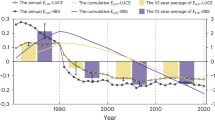 The CLM model was rigorously validated against observations to ensure a correct estimate of land carbon in this study. Specifically, simulated Gross Primary Productivity (GPP) was compared with data from nine carbon flux towers spanning the 2003–2010 period (Supplementary Table 3). The correlation between observed and estimated GPP is illustrated (R2 = 0.8, P < 0.001, Supplementary Fig. 5), indicating a high degree of precision in the estimation.