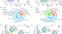 Raw chromatogram-mass spectrometry data were processed with MZmine software (http://mzmine.github.io) to obtain the m/z value (with a mass tolerance of ±2 ppm), formulas, retention times, and peak areas of detected organic compounds47. The detailed processing steps and settings have been reported in previous literature25,48. Formula assignment was subject to the following limitations: C ≤ 50, H ≤ 160, O ≤ 80, N ≤ 5, S ≤ 3. To remove chemically meaningless molecules, formulas were further constrained: H/C and O/C were in the range of 0.3–3 and 0–3, respectively; in ESI-, N/C and S/C were in the range of 0–0.5 and 0–0.2, respectively; in ESI + , these two ratios were in the range of 0–1.3 and 0–0.8, respectively21,49. The abundance of a compound in the following discussion refers to its chromatographic peak area and was corrected by subtracting blanks. In addition, the abundance of each sample was corrected by sampling volume for inter-sample comparison.