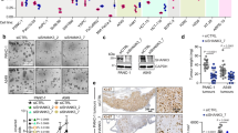 As previously described62, female FVB/n mice were injected orthotopically (into the head of the pancreas) with 1000 luciferase-expressing p53 2.1.1syn_Luc mouse pancreatic tumor-derived cells (KrasG12D/Tp53−/−; provided by Dr. Eric Collisson, UCSF) that had been resuspended in 50% Hanks’ balanced salt solution (Gibco), 50% LDEV-free Matrigel (Corning) at a concentration of 25 cells/mL. Ketamine (80 mg/kg), xylazine (8 mg/kg), and acepromazine (1 mg/kg) were used to anesthetize the mice prior to surgery. A tuberculin syringe with a 30-g needle was inserted into an abdominal incision and used for implantation. The incision was closed using surgical staples. After a one-week recovery, initial IVIS imaging with D-luciferin substrate (Perkin Elmer) was performed using an IVIS Lumina optical imaging system. For each independent experiment, mice were separated into groups of 10, and treated daily with either vehicle (20% HdpCD, IP), SCH772985 (35 mg/kg, IP), CCT251545 (75 mg/kg, OG), or a combination of both SCH772985 (35 mg/kg, IP) and CCT251545 (75 mg/kg, OG). CCT251545 was resuspended in ORA-Plus (Perrigo). IVIS imaging was performed at weekly time points. Mice were sacrificed at the conclusion of the study, with the endpoints defined as 28 days of drug or vehicle treatment, progressively growing tumor nodule >2 cm, or signs of poor health (e.g., weight loss, decreased grooming, or inability to feed). At study endpoint, the pancreas was removed, and tumors were then excised from the pancreas and weighed. Euthanasia was performed by CO2 treatment followed by cervical dislocation. All animal studies were conducted in accordance with the UNC Institutional Animal Care and Use Committee (IACUC).