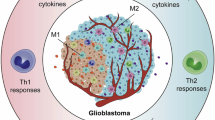 M1 macrophages are triggered by damage-associated molecular patterns (DAMPs) and pathogen-associated molecular patterns (PAMPs). The M1 state can be induced in vitro by exposing immature macrophages to Toll-like receptor 4 (TLR4) ligands, interferon-γ (IFN-γ), lipopolysaccharide (LPS), or granulocyte-macrophage colony-stimulating factor (GM-CSF)64. The M1 phenotype is defined by its pro-inflammatory and tumor-suppressing functions, boosting antigen presentation via major histocompatibility complex class II (MHC II) and producing cytokines like C-C motif chemokine ligand 2 (CCL2), tumor necrosis factor-α (TNF-α), IL-1β, complement component 1q (C1q), IL-1α, IL-6, and IL-12, which facilitate Th1 immune responses64,65. Conversely, the M2 phenotype is triggered by anti-inflammatory cytokines, including IL-4, IL-10, and IL-13, and is associated with immune suppression and tumor promotion. M2 macrophages release immunosuppressive molecules such as IL-4, IL-10, IL-13, CCL22, CCL17, arginase 1 (ARG1), insulin-like growth factor 1 (IGF1), brain-derived neurotrophic factor (BDNF), and transforming growth factor-β (TGF-β), inhibiting cytotoxic T cells and attracting regulatory T cells (Tregs) and myeloid-derived suppressor cells (MDSCs)66,67,68,69. The M2 phenotype is further classified into four subtypes: M2a, M2b, M2c, and M2d67. M2a is activated by IL-4 and IL-13, M2b by IL-1R ligands or immune complexes plus LPS, and both M2a and M2b are involved in Th2 activation and immune regulation70. M2c is induced by IL-10 and TGF-β, M2c is closely associated with immunoregulation and matrix deposition in GBM. While M2d is stimulated by Toll-like receptors (TLRs) antagonists and releases IL-10 and vascular endothelial growth factor (VEGF)71,72,73.