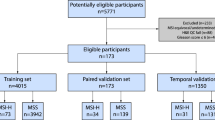 Interestingly, while some models have shown impressive performance, two studies on TCGA cohorts observed notably lower AUROCs. For instance, MSINet achieved an AUROC of 0.779, whereas WiseMSI’s performance was comparatively lower, with an AUROC of 0.63212,13. In our study, the Deepath-MSI model demonstrated superior performance relative to these prior models. Moreover, when comparing Deepath-MSI with MSIntuit, the sensitivities of the two models were comparable, with Deepath-MSI and MSIntuit both achieving sensitivities of approximately 95%. However, Deepath-MSI demonstrated markedly higher specificity at 90.7–91.7%, compared to MSIntuit’s 46–47%, potentially excluding up to 44% more MSS CRC patients from unnecessary further molecular testing14.