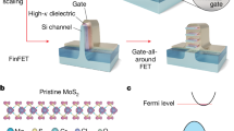 With the advent of a hyper-connected society based on the Internet-of-Things, where more than one trillion objects are connected with each other via the Internet, the amount of data to be handled and the processing power consumption are expected to increase rapidly1,2,3,4. Under this circumstance, there have recently resumed various studies on the multi-valued logic (MVL) computing technology, which utilizes more than two logical states and enables power-efficient processing of information5,6,7. To realize such computing technology, it is important to achieve an MVL hardware platform that is based on MVL devices with a multi-threshold voltage (multi-VTH). Such MVL devices have been commonly developed in two ways: one uses a negative-differential transconductance (NDT) phenomenon and the other exploits a negative-differential resistance (NDR) phenomenon8,9,10,11,12,13,14,15,16,17,18,19,20,21,22,23. The NDT and NDR phenomena denote that the drain current decreases in a specific voltage region when the gate voltage (for NDT phenomenon) or drain voltage (for NDR phenomenon) increases, showing “N”-shaped current−voltage (I−V) characteristic curves. The MVL devices on the basis of the NDT and NDR characteristics were implemented by using various types of heterojunctions (types I, II, and III)17,18,19,20,21,22,23,24,25,26,27,28,29,30,31,32. In recent years, van-der Waals (vdW) materials, which have very low surface defect density and therefore enable to form high-quality heterojunctions via a simple stacking process33,34,35,36,37,38,39,40,41,42,43,44,45,46,47,48, have been proposed for the implementation of MVL devices17,18,19,20,21,22,23.