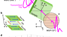 The crystal structure of Fe3GeTe2 is p63/MMC space group [see Fig. 3(b)] with the A1g mechanical representations. The Fe and Ge atoms located at 4e and 4 f Wyckoff positions compose the A1g Raman active modes. To be specific, 4 Fe atoms at the 4e Wyckoff position vibrate in the out-of-plane direction, which is the same for 4 Te atoms at the 4 f Wyckoff position [see Fig. 3(b)]. We also calculated the vibration eigenvector of the Raman active A1g mode. The phonon frequency of this A1g vibrational mode is 3.86 THz, which is labeled as a red star in the phonon dispersion in Fig. 3(a). Note that the phonon frequency obtained in our experiments is around 3.50 THz, which is a little off from the calculated value. The discrepancy can be attributed to (1) the first-principles calculations are carried out at absolute zero temperature, but as the temperature increases, the phonon frequency normally decreases due to lattice expansion44,46, and (2) sample size effect: the first-principles calculations are carried out for bulk crystal, while experiments are conducted on nano-films or finite thickness. Raman spectroscopy is an important experimental method to characterize solid phonon physics, which reflects the magnitude of the quantized energy of lattice vibration. The vibrational frequency of the A1g mode obtained by Raman spectroscopy in Fe3GeTe2 flakes at room temperature and with similar sample size is in great agreement with our experimental observations46. The origin of the phonon is lattice vibration in which the interactions between atoms (restoring forces) essentially determine the vibration frequencies. It has been reported that, in 2D materials (e.g., MoS2), the frequency of A1g phonon mode shows redshift with a decreasing number of layers which is attributed to the weakening of the restoring forces acting upon vibrations while the E2g phonon mode blueshifts47,48,49,50. It is known that the vibration of atoms in A1g phonon mode is out-of-plane (refer to monolayer plane) while that of E2g phonon mode is in-plane. The opposite response of phonon frequency for A1g and E2g mode in 2D materials may root in the heavily asymmetric in-plane/out-of-plane inter-atomic interactions and suggests the possibility to control the phonon frequency by instantaneous modification of restoring forces, e.g., through laser polarization.