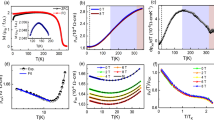 High-pressure DC magnetization measurements were performed via MPMSTM (Quantum Design) and a custom-made turnbuckle DAC. A rectangular single crystal with dimensions of ~155 × 155 × 40 μm3 was loaded into the cell slightly after cleavage. The DAC for the magnetization measurements was made of a nonmagnetic Be‒Cu alloy, and silicone oil was used as a pressure-transmitting medium. The background signal from the DAC was removed by measuring the magnetization of the DAC without and with the sample and subtracting the former measured data from the latter (Supplementary Fig. 4). The pressure was determined via a ruby fluorescence line shift at room temperature45.