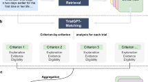 where TSC is the task definition of study screening; Fi is the study i’s content; \({I}_{i}^{m}\in \{-1,0,1\},\forall m=1,\ldots ,M\) is the prediction of study i’s eligibility to the m-th criterion. Here, − 1 and 1 mean ineligible and eligible, 0 means uncertain, respectively. These predictions offer a convenient way for users to inspect the eligibility and select the target studies by altering the aggregation strategies. \({I}_{i}^{m}\) can be aggregated to offer an overall relevance of each study, such as \({\hat{I}}_{i}={\sum }_{m}{I}_{i}^{m}\). Users are also encouraged to extend the criteria set or block the predictions of some criteria to make customized rankings during the screening phase.