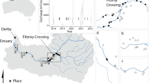 Connectivity between freshwater and marine systems, and the dependence of marine species on the brackish estuarine environments where they intersect, have received extensive attention in tropical northern Australia15,29,34,39,56,57. Earlier studies used methods such as regression analyses39 and linear statistical approaches to investigate relationships between flow and downstream prawn biomass8, and otolith biochronology to quantify the relationship between river flow and barramundi growth rates31. Our study draws on this research to provide an integrated framework to quantify relationships between flow, population abundance and productivity, extending across catchments and jurisdictions, to provide a holistic basis for evaluating WRD impacts.