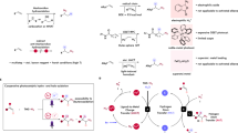 Preliminary mechanistic studies (Fig. 5) are in agreement with the proposed cycle shown in Fig. 2. The addition of HCl or 4-chloropyridine hydrochloride to a solution of 1 resulted in an increase in absorption between 390 and 460 nm as compared with that of 1 (Supplementary Fig. 5). Stern–Volmer quenching experiments cannot, by definition, be conducted with the ion pairs relevant to the reaction, but even the results with the in situ generated I+BF4– and quenchers (Cl–, NO3– and 1-dodecene) are consistent with the reductive quenching of I+ by either Cl– or NO3– (Fig. 5a). Radical trapping experiments with 1,1-dichloro-2-vinylcyclopropane further substantiated the formation of Cl· and NO3· from the reductive quenching process (Fig. 5b).