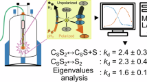 Hydrogen isotope exchange kinetics (Supplementary Discussion, Supplementary Figs. 17–20 and Supplementary Table 4) were analysed using a model that assumes only one bound-state geometry (Fig. 2c and Supplementary Fig. 17). As compared with the model chosen by Leroux et al.61, we explicitly chose a model in which the two hydrogen atoms are distinguishable in the bound state, since this is required for the occurrence of PHIP effects. For Hmd, multiple isotope exchange events can happen for one H2 binding event (Fig. 1c)33. In our kinetics models, we implemented multiple isotope exchange events by assuming that isotope exchange (H+ ⇄ D+) occurs at only one of the hydrogen positions in the bound state and that mutual exchange between the two hydrogen positions is possible, which enables us to estimate upper bounds for the rate of mutual exchange (kex). For simplicity, hydrogen isotope exchange kinetics were characterized at pD 6.0, where net kinetic isotope effects for this reaction are small33. During analysis, we therefore neglected kinetic isotope effects.
