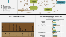 Structural equation modelling (SEM), which is built on path analysis and factor analysis, is one of the most useful statistical approaches to disentangle numerous factors of influence30 and develop deeper causal understanding from observational data31. Users of SEM translate theoretical frameworks (informed by knowledge of the ecosystem) into explicit multivariate hypotheses, and the SEM is used to evaluate whether the theory is consistent with empirical data30,32. A robust SEM allows researchers to quantitatively assess the relative importance of ecological drivers32,33 and is thus well suited for predicting ecosystem responses to global change1,33.