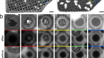 Bacterial cell culture and staining: E. coli strain C43 expressing McjD fused with EGFP were prepared for imaging. Briefly, the overnight starter culture was diluted 1:100 in fresh LB media supplemented with 50 μg ml−1 kanamycin and grown at 37 °C until an optical density at 600 nm (O.D.600) of 0.6 was achieved. Then the expression of McjD was induced by adding IPTG (Isopropyl β-D-1-thiogalactopyranoside) to a final concentration of 1 mM at 25 °C overnight. The cells were spun down before freezing. The EGFP counts were measured using a Spectramax microplate reader (Molecular Devices) from 1 ml of culture re-suspended in 200 μl PBS (Thermofisher). For the analysis, the bacterial pellet was re-suspended in 2 ml of PBS to an optical density (O.D.600) of ~0.6 and kept on ice until plunge-freezing. For two-colour imaging, E. coli expressing McjD-EGFP were re-suspended in 250 μl PBS to O.D.600 ~ 0.6 and centrifuged at 10,000g for 5 min to wash out residues of culture medium. The pellet was then re-suspended in 25 μl of 100 nM DiSC3(5) in DPBS and incubated for 15 min on ice. 2.5 μl of sample were applied to the flat surface of each superSIL immediately prior to plunge-freezing.