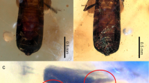 Caution is also required when inferring an insect diet on the basis of just a long proboscis. For example, Early Cretaceous nemestrinid and tabanomorph flies with long proboscides were interpreted as angiosperm pollinators9, but a zhangsolvid fly in Early Cretaceous Spanish amber—with an even longer proboscis—had a pollen load from a gymnosperm in the Mesozoic group Benettitales10. It is possible that these Cretaceous long-tongued flies may have been feeding on early angiosperms as well, but clearly they were not restricted to them. Also, mouthpart structures presumed to be adaptations for floral feeding may well be exaptations that originally arose for other functions, even those predating the appearance of flowering plants. Species of Mesozoic scorpionflies in and related to the family Pseudopolycentropodidae, have long proboscides, apparent perfect fits for probing the narrow pollen tubes of extinct gymnosperms11. The unusual, dipterous Parapolycentropus in Burmese amber, which has a fine, stylet-like proboscis, shares adaptive features with many empidid and ceratopogonid flies that today are insectivorous, a diet typical of mecopterans12, but a specimen of this scorpionfly was recently found with nearby Cycadopites pollen13. It may have actually fed on both: some hematophagous species of mosquitoes also feed on nectar and are effective pollinators14. Pollen on or in the fossil insect provides definitive, direct evidence of diet.