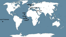 Analysis of historical trawl data (1994–2018) show a strong regional distribution of Atlantic cod around the Faroe Islands (Fig. 1, Supplementary Fig. 4). The standardised demersal survey has occupied the same grid positions over its 25-year history, allowing us to analyse historical catch data from the exact sampling positions of the present study (Fig. 1b, d, Supplementary Table 2). High biomass area are typically located in the regions North, West and Bank central of the Faroe Islands with median (and maximum) CPUEs of 1566 (5187), 703 (7080) and 98 (2689) kg h−1, respectively. Regions of intermediate biomass are the East coast (<150 m), South and East shelf (<150–200 m), with CPUEs of 91.4 (626), 27.5 (92.3) and 11.0 (55.9) kg h−1, respectively. Low biomass regions were identified on the edge of the Faroe Bank (Bank edge; median CPUE 5.37 kg h−1) and further to the East, between 200 and 500 m (East deep; median CPUE 3.48 kg h−1). Despite temporal fluctuations in total catches, this regional distribution of Atlantic cod has been quite consistent over the trawl-survey period (Fig. 1d, Supplementary Fig. 4).