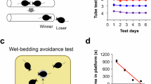 As stated previously, we adapted the method proposed by Hurst et al.37 to allocate quail to social ranks within their groups. For each dyad in the group, the agonistic score was estimated as the difference between the time spent pecking and the time receiving pecks from a given conspecific. Positive values represent animals that performed more pecks than received, while the inverse is true for negative values. The animals with the highest 20% of agonistic scores (≥4.9 s) were considered dominant, and thus the value of −4.9 was used as the counterpart to classify subordinate birds. Raw data is shown in Supplementary Tables 1 and 2.