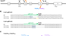 Tomato plants (Solanum lycopersicum L.) cv. Micro-Tom and Ailsa Craig were used for site-directed mutagenesis experiments. Plants were grown under conditions of 24 °C with 16 h light at 4000–6000 lx/8 h dark in the growth chamber. Transgenic tomato plants were generated using TiD vectors for plants. Leaf disks from tomato cotyledons were transformed with Agrobacterium tumefaciens strain GV2260 harboring the TiD vector. Transgenic calli and shoots were selected and regenerated to plantlets on MS medium containing 100 μg/mL kanamycin according to the method of Ueta et al.17.