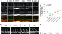 Tissue sections were immunostained following the same basic protocol: (1) 30 min room temperature (RT) incubation in Tris-Glycine; (2) 1 h RT incubation +/− permeabilization with 0.01% TritonX-100; (3) 2 h RT incubation in blocking solution (5% Sheep Serum, 1% Roche Blocking Buffer in PBST); (4) 1 h at RT—overnight 4 °C incubation with 1:1000 primary antibody unless otherwise noted; (5) wash with PBST; (6) 2–3 h RT incubation with 1:2000 secondary antibody in 5% Sheep Serum, 1% Roche Blocking Buffer in PBST; (7) wash with PBST and imaging analysis. Quantification of immunostaining intensity was performed by ImageJ analysis software. Images were acquired using a Leica SP5 II confocal microscope or Nikon Yokogawa CSU-W1 spinning disk confocal microscope. All images were acquired at the same intensity, step size and image resolution for analysis. The images were analyzed using ImageJ85. Data is reported as the percent average intensity per region of interest size from a minimum of three images from three independent experiments/animals ± s.e.m.