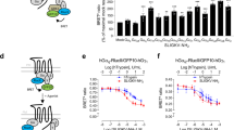 The binding affinities of each series were compared for competitive binding with a europium-tagged fluorescent derivative of the known PAR2 agonist 2f-LIGRLO-NH2 to Chinese hamster ovary cells transfected with human PAR2 (CHO-hPAR2). All compounds tested bound to human PAR2 (Table 1 and Fig. 1b); the benzimidazoles (AZ3451 pKi = 6.9 ± 0.2) bound with higher affinity than the imidazoles (AZ8838 pKi = 5.2 ± 0.1). In agreement, both series bound to HEKexpi293F membranes expressing hPAR2 (AZ3451 pKi = 7.9 ± 0.1 and AZ8838 pKi = 6.4 ± 0.1) in competition binding assays against 3H-acetylated-GB110. Throughout this manuscript, the reference agonists GB110, 2f-LIGRLO-NH2 and SLIGRL-NH2 are interchanged as they have each been shown to bind at a common or overlapping site within PAR2 and are reported to activate the receptor in a similar manner26,27.