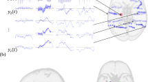 Following prior works, such as80, we define ‘on’-‘off’ activation states for each brain region by binarizing the normalized envelope of the power amplitude of each frequency band (Fig. 1). We fit the pairwise MEM to the thresholded and binarized normalized power amplitude states of electrodes from concatenated 14, 16, 14, 13, and 19 h of inter-ictal iEEG recording of patients 1–5, respectively. We picked only the single closest (Euclidean distance) electrode to the ROI’s center for analysis when more than one electrodes exist within the same ROI. A total of 69, 36, 76, 70, and 64 electrodes were selected from patients 1–5, respectively. To calculate the power amplitude states, we first segmented the time-series into 36 100-second windows (Fig. 1a). Next, for each segment and each electrode we calculated the wavelet power81 of the time-series (Fig. 1b). We band-passed the wavelet power by averaging the power amplitude across all the frequencies within each band. Next, the power amplitude time-series (all bands) were high-pass filtered at 0.5 Hz to minimize the effect of ultra-slow fluctuations of power on the binarized states. The high-passed time series were then z-scored and binarized by thresholding at zero to create band-passed power amplitude states (Fig. 1c). We also explored higher binarization threshold of one. Finally to reduce the temporal dependence of samples we down-sampled the states by the factor of 10. At each time t, the power amplitude state is defined by \({V}^{t}=\left[{\sigma }_{1}^{t},{\sigma }_{2}^{t},...,{\sigma }_{N}^{t}\right]\), where \({\sigma }_{i}^{t}\) is the binarized power amplitude of electrode i at time t, where \({\sigma }_{i}^{t}=1\) (0) for power above (below) the threshold, and N is the total number of electrodes. For electrode i, the empirical power amplitude activation rate \(\left\langle {\sigma }_{i}\right\rangle\) is given by \((\frac{1}{T})\mathop{\sum }\nolimits_{t = 1}^{T}{\sigma }_{i}^{t}\), where T is the number of time slices. Likewise, the empirical co-activation rate between electrodes i and j, \(\langle {\sigma }_{i}{\sigma }_{j}\rangle\), is defined by \((\frac{1}{T})\mathop{\sum }\nolimits_{t = 1}^{T}{\sigma }_{i}^{t}{\sigma }_{j}^{t}\).