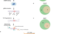 For detection of CRISPR off-target effects, HEK293T and MCF7 cells were transfected with PEI reagent (Polysciences, Inc., PA, USA) or Amaxa Cell Line Nucleofector Kit V (VCA-1003, Lonza, Switzerland) according to the manufacturer’s instructions. Briefly, in the PEI transfection method, 250 ng of pCAG-Cas9-mcherry, 250 ng of FE-sgRNA-encoding plasmids31, and 10 nM Tag/Oligo-1/Oligo-2 were transfected per well in a 24-well plate. In the Nucleofector Kit method, 1000 ng of pCAG-Cas9-mcherry, 1000 ng of FE-sgRNA-encoding plasmids, and 20 nM Tag were transfected per test. For large-scale off-target cleavages detection, HEK293T cells were transfected by PEI with 10 nM Tag, 1000 ng of SpCas9 or AsCpf1, and 1200 ng/1000 ng of total FE-sgRNA (31 for SpCas9 and 23 for AsCpf1) per well in a six-well plate. Cells were harvested 3 days after transfection and genomic DNA were extracted for library construction, sequencing, and performing bioinformatics analyses. For identification of insertion sites introduced by transposons, HEK293T cells were transfected by PEI with 250 ng of pCAG-dCas9/Cas-SB and 250 ng of donor EGFP-encoding plasmids per well in a 24-well plate. Cells were harvested 21 days for complete degradation of EGFP plasmid after a three-day puromycin selection starting the next day post-transfection. Then, genomic DNA were extracted for library construction, sequencing, and performing bioinformatics analysis. The donor DNA sequences and the sgRNAs used in this study are shown in Supplementary Table 3 and Supplementary Data 2.
