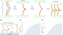 Based on a reported methodology57, liposomes with C-terminally His-tagged MEC12 were prepared at a lipid to protein molar ratio of 50:1 in 10 mM HEPES, 150 mM NaCl, 3 mM CaCl2, pH 7.5. After 10 min at room temperature, an excess amount of EDTA (8.3 mM) was added to deactivate the cadherin molecules. After the addition of 10 mM CaCl2, the optical density at 650 nm was measured using a spectrophotometer every 1 s for 1000 s. Hit 1 or phenyl-Hit 1 diluted in DMSO was added to the solution to a final DMSO concentration of 5% DMSO. The constant rate K was calculated using GraphPad Prism 8 software assuming exponential decay and one-phase association.