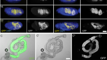 We performed all Drosophila crosses at 25 °C. The number of females was no more than 30 for each cross to maintain moderate body size, and they were transferred to new bottles containing fresh food every 2 days. Drosophila food was composed of a mix of 12 L water, 0.9 kg cornmeal, 0.12 kg soybean meal, 0.1 kg agar, 0.21 kg yeast, 0.8 l barley malt syrup, and 150 ml 10 % nipagin in ethanol. We collected the females after eclosion and placed them with males in a new vial at 25 °C. We supplied fresh food vials every 2–3 days and we used the 7-day old or 14 days old mated females in the experiments.