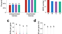 The local epigenetic modifications of ACR may affect its accessibility, which may affect the differential expression of genes22,24. Histone acetylation is generally associated with the open chromatin structure26, whereas histone methylation can define open or closed chromatin states depending on the degree of methylation and position of the amino acid residue53. In our study, the intensity of ACRs was positively correlated not only with active histone modifications, H3K4me3 and H3K27ac, but also with repressive histone modification H3K27me3 (Fig. 5a). In addition, all three epigenetic modifications were found to have positive effects on gene expression (Supplementary Fig. 7). H3K27me3 was found to have a greater influence on ACR openness than H3K4me3 and H3K27ac, and the bivalent histone modifications H3K27me3 and H3K27ac play important roles in chromatin openness during the allopolyploidization process (Fig. 4d). H3K27me3 has long been thought to be a repressive modification that is associated with gene silencing53,54,55, and it is found to be enriched in silenced genes with lower chromatin accessibility13,56. However, a previous study found that active genes showed significantly higher levels of H3K27me3, whereas silenced genes displayed lower levels of H3K27me3 in cold-treated tubers of potato30. In our study, highly and moderately expressed genes with higher ATAC-Seq signals exhibited higher H3K27me3 than lowly expressed and silenced genes (Fig. 3a and Supplementary Fig. 10) in the three genotypes. These observations reflected the complex roles of H3K27me3 in defining chromatin status and gene expression regulation among different plant species. Interestingly, lowly expressed genes had similar accessibility and H3K27me3 modification levels to silenced genes. In addition, although the H3K4me3 and H3K27ac modification levels of lowly expressed genes were lower than those of highly and moderately expressed genes, they were much higher than those of silenced genes (Supplementary Fig. 11). These results indicated that the prerequisite for transcriptional activation of lowly expressed genes was not accessible chromatin, but active histone modifications (H3K4me3 and H3K27ac) in B. napus. DNA methylation was found to be depleted in ACRs in many plants13,22. The depletion of DNA methylation was observed in the two edges of ACRs in B. napus and its progenitors (Supplementary Fig. 8). Although DNA methylation levels were found to be positively related to the intensity of ACRs (Supplementary Fig. 9), DNA methylation indeed negatively affected gene expression in B. napus and its progenitors (Supplementary Fig. 12). Increased chromatin accessibility influenced by DNA methylation25 and loss of Polycomb Group complexes57 was not inevitably accompanied by increased gene expression. These observations indicated that the effect of local DNA methylation on chromatin accessibility was separate from the effect of chromatin accessibility on gene expression, and accessible chromatin did not necessarily activate transcription.