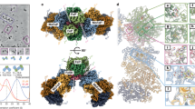 NifB-dependent FeMo-co synthesis assays were prepared in anaerobic chambers15. We assembled 100 μL reactions containing 3 μM OsNifHHt, 1 μM ScNifBMt, 9 μM [4Fe-4S] cluster-loaded EcNifUAv, 1.5 μM apo-NifENAv, 0.3 μM apo-NifDKAv, 125 μM SAM, 17.5 μM Na2MoO4, 175 μM R-homocitrate, 1 mg mL−1 BSA, and ATP-regenerating mixture (1.23 mM ATP, 18 mM phosphocreatine, 2.2 mM MgCl2, 3 mM DTH, 46 μg mL−1 creatine phosphokinase, 100 mM MOPS pH 7.5) at 30 °C for 1 h. In the positive control reaction, the assay was carried out by using ScNifHHt instead of the rice purified variant, and NifB-co (20.4 μM Fe) instead of ScNifBMt and EcNifUAv. In the negative control reaction, the reaction mixture contained all the components except for any source of NifB-co or ScNifBMt and EcNifUAv. Following the in vitro synthesis and insertion of FeMo-co, 17.5 μM (NH4)2MoS4 was added to prevent further FeMo-co incorporation into apo-NifDKAv, and the reaction was incubated for 20 min at 30 °C, shaking at 600 rpm. Activation of apo-NifDKAv was analyzed by adding 500 μL ATP-regenerating mixture and NifHAv (2.0 μM final concentration) in 9-mL vials containing 500 μL acetylene under argon gas. The acetylene reduction assay was performed at 30 °C for 20 min, and the resulting ethylene was measured in 50 μL gas-phase samples using a Porapak N 80/100 column as described above.