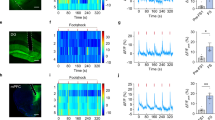The pcDNA3.1 vector carrying rM3Darr was provided by Professor Ken-ichiro Nakajima who generated this construct containing M3 with the R165L point mutation. AAV9-hSyn-DIO-rM3Darr-mCherry was developed to selectively activate β-arrestin-biased signaling without perturbing G protein mediated pathways in response to CNO treatment as described previously36. The Cre sequence from pCAG-Cre-GFP (Addgene Plasmid # 13776) was cloned into pAAV2-THP-EGFP (Addgene Plasmid # 80336) through ECOR I and Sal I restriction enzyme sites. AAV9-mCaMKIIα-EGFP-P2A-iCre, AAV9-mCaMKIIα-EGFP, AAV9-EF1α-Flex-ChrimsonR-tdTomato, AAV9-THP-Cre, scAAV1-hSyn-FlpO, and AAV9-EF1α-fDIO-Cre-mCherry were packaged by Taitool Biological Co., Ltd. AAV9-EF1α-DIO-eNpHR3.0-EYFP, AAV9-EF1α-DIO-EYFP, AAV9-hSyn-DIO-rM3Darr-mCherry, AAV9-hSyn-DIO-mCherry, AAV9-hSyn-NE2h-EGFP, and AAV9-CAG-Cre were packaged by Neuron Biotech Co., Ltd. AAV9-EF1α-DIO-hChR2(H134R)-mCherry and AAV9-EF1α-DIO-mCherry were packaged from the BrainVTA Co., Ltd. AAV titers ranged from 2.0 × 1012 to 2.5 × 1012 vector genome (vg) ml−1 were used in all experiments. High titer of scAAV1-hSyn-FlpO (1 × 1013 vector genome (vg) ml−1) was applied for anterograde infection.