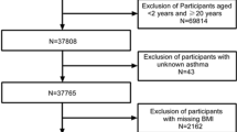 Deng, X., Ma, J., Yuan, Y., Zhang, Z. & Niu, W. Association between overweight or obesity and the risk for childhood asthma and wheeze: an updated meta-analysis on 18 articles and 73 252 children. Pediatr. Obes. 14, e12532 (2019).