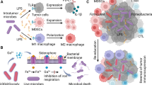 Pancreatic tumors, like other solid tumors, are heavily infiltrated by inflammatory leukocytes, but their antitumor immune response is ineffective due to immunosuppression7,8. Strategies to reverse immune suppression by targeting myeloid cells via vaccination with pancreatic tumor antigens, or by application of immune checkpoint inhibitors suggest that proper targeting of the immune system may generate effective strategies to target pancreatic tumors9. Tumor associated macrophages (TAMs) represent a major component of immune infiltrating leukocytes in pancreatic tumors10. Soluble factors secreted by TAMs have been shown to promote cancer progression by establishing an immunosuppressive microenvironment that inhibits antitumor T-cell responses. TAMs also mediate resistance to conventional chemotherapies and contemporary targeted regimens11,12,13. Macrophages are highly plastic cells that acquire distinct phenotypes in response to signals present within different microenvironments14,15,16. In response to bacterial products such as lipopolysaccharide (LPS) and T helper 1 cytokines, macrophages are polarized to the classical or “M1”-like phenotype, leading to the expression of proinflammatory cytokines17. M1 macrophages are characterized by high expression of inducible nitric oxide synthase (iNOS), tumor necrosis factor α (TNF-α), CD80, CD86, major histocompatibility complex class II (MHCII) proteins, interleukins such as IL-6 and IL-12, and can exert an antitumor effect18. In contrast, activated “M2”-like macrophages can be polarized in the presence of Th2 cytokines such as IL-4/IL-13, IL-10, or transforming growth factor beta (TGF-β). M2 macrophages are immunosuppressive and induce tumor-promoting functions by enhancing tissue remodeling and facilitating angiogenesis19,20. In pancreatic tumors, TAMs exhibit both M1 and M2 phenotypes, but show preferential expression of M2 markers such as Arginase 1, CD206, and TGF-β leading to a higher M2:M1 ratios which correlates with a poorer prognosis in pancreatic cancer patients21,22. Macrophages that are the vanguard of innate immune system also play a pivotal role in iron homeostasis23,24,25. Macrophage polarization is highly dependent on iron metabolism, which becomes deregulated in tumors, thus affects the tumor immunity26. Studies have shown that over 60% of iron metabolism-related genes are differentially expressed between the M1/M2 polarization axis27. M1 macrophages express high levels of the iron storage protein ferritin and low levels of iron export protein ferroportin (Fpn). In contrast, M2 macrophages display an iron-export phenotype through increased expression of Fpn and decreased expression of ferritin leading to iron export and little storage27,28,29,30. Therefore, higher iron availability in the tumor microenvironment (TME) was observed which provided growing cancer cells with iron critical to enzymatic processes and tumor growth31,32. Fpn concentration is regulated by increased expression of hepcidin (HAMP) which causes Fpn internalization and degradation. Endogenous expression of HAMP by macrophages is increased upon activation of Toll-like Receptor 4 (TLR4) by bacterial products such as LPS. HAMP binds to Fpn and causes Fpn internalization and degradation leading to an iron storage-associated pro-inflammatory M1 phenotype33,34,35,36. In recent years, a link between the human microbiome and pancreatic cancer has been established and altered patterns of oral and gut microbiome can increase the risk of pancreatic cancer37,38. Some probiotic microbiota species, however, can provide beneficial effects to prevent the tumor growth39,40. Recent investigations have shown tumor-suppressive potential of ferrichrome, a siderophore (iron chelator), produced by the probiotic strain Lactobacillus casei in colon and gastric cancers40,41.