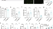 We first assessed the social investigation of test mice aged P34 towards an unfamiliar, sex-matched juvenile conspecific C57BL/6J mice (Fig. 1a–d) and then we measured social interaction between an unfamiliar, age- sex- and genotyped-matched pairs of test mice aged P38 (Fig. 1e–h).