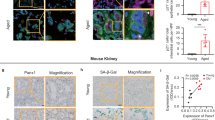 Paraffin-embedded kidney sections (4 μm) were deparaffinized, and ethylene diamine tetra acetic acid (1 mM) was used for antigen retrieval. Hydrogen peroxide (H2O2, 0.03%) was used for the immunohistochemical study, and the primary antibody was incubated overnight at 4 °C. For immunofluorescence, the slides were incubated with primary antibodies at 4 °C overnight. The images were detected by fluorescence microscopy, and positive images were analyzed by computerized digital image analysis. The intensity of immunofluorescence was analyzed using Image J.