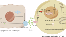 sgRNA sequences targeting the Caspase3 gene (5′- ATGTCGATGCAGCAAACCTC-3′), Caspase7 gene (5′- CGTTTGTACCGTCCCTCTTC-3′), GSDMD gene (5′- CGGCTCTCACCTGTCGCGGG-3′), MLKL gene (5′-TTGAAGCATATTATCACCCT-3′), BAX gene (5′- TTTCTGACGGCAACTTCAAC-3′) and BAK gene (5′- GCATGAAGTCGACCACGAAG-3′) were subcloned into lentiCRISPRv2 vector (Addgene, catalog 52961). Packaging plasmids and lenti-vector were co-transfected into HEK293T cells. Lentivirus was collected from the cell culture medium after 48 h and infected into HOKs with 4 μg/ml polybrenes.